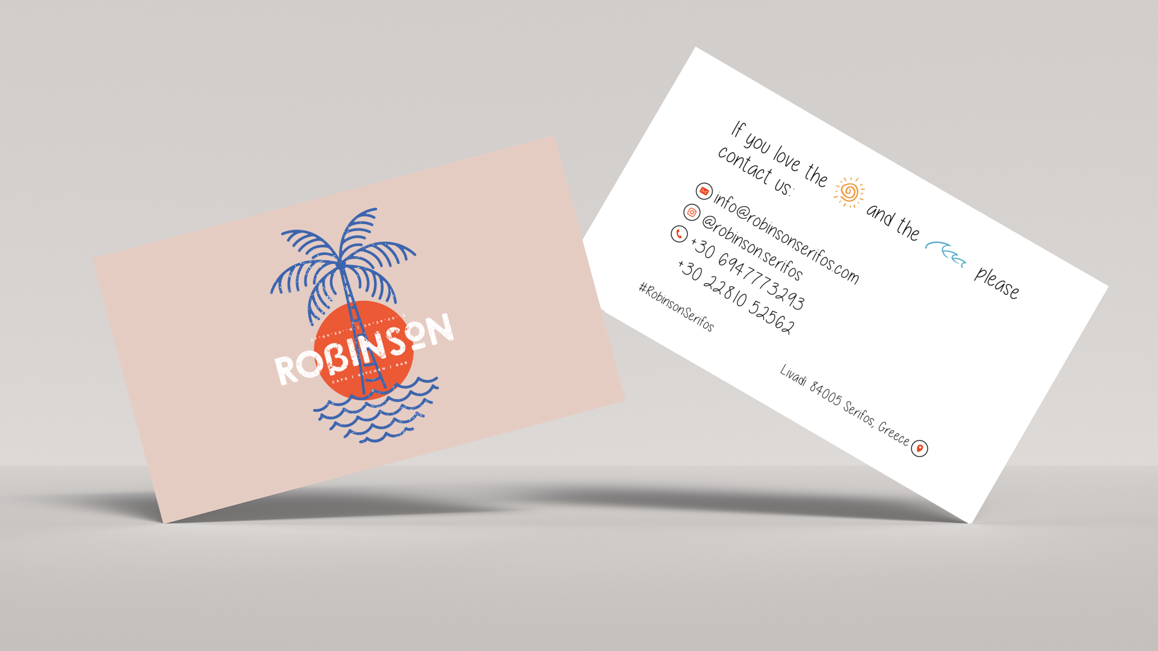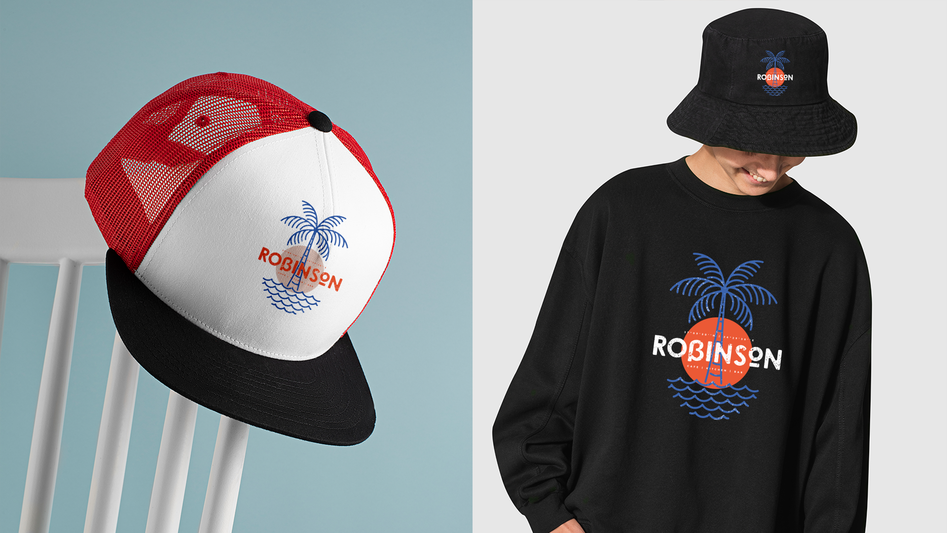 The redesigned logo for Robinson Serifos blends a fresh aesthetic with elements that highlight its unique identity: the sun, the sea, and the tropical vibe of the palm tree. The new visual language preserves the brand’s laid-back character while giving it a more modern and versatile form for both digital and print applications.